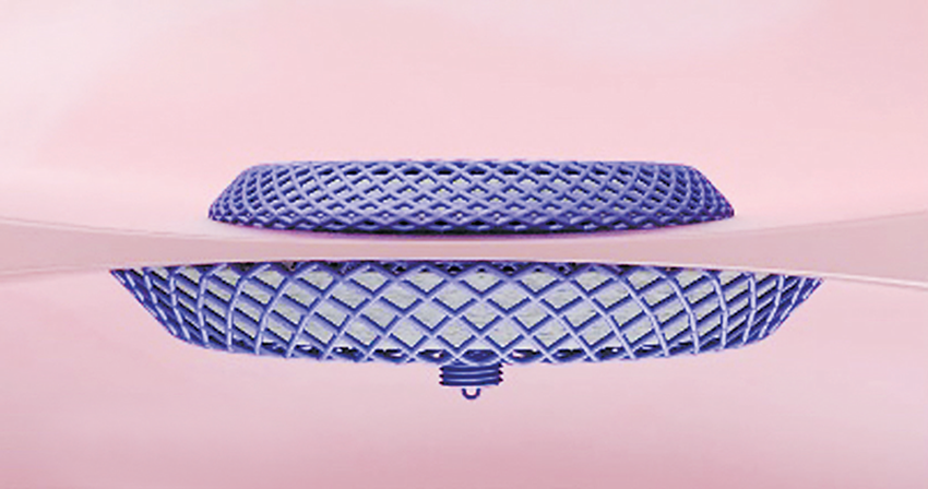 既然有了“孔”,就得想辦法“堵”。生物可降解卵圓孔封堵器由一大一小2個內(nèi)凹狀的“圓盤”連接在一起,細看呈蜂窩狀,就像一個“塞子”,牢牢扣住左右心房的“墻壁”。