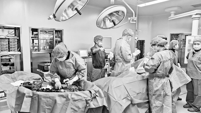 圖為醫(yī)生正在做術前準備。