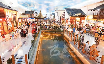 “我們在商業(yè)街區(qū)后面設(shè)計了三個園林,布局借鑒了拙政園、留園等蘇州經(jīng)典園林景觀,意在讓旅客擁有‘不入蘇州城,盡覽姑蘇景’的體驗?!标柍魏?wù)區(qū)工作人員介紹。