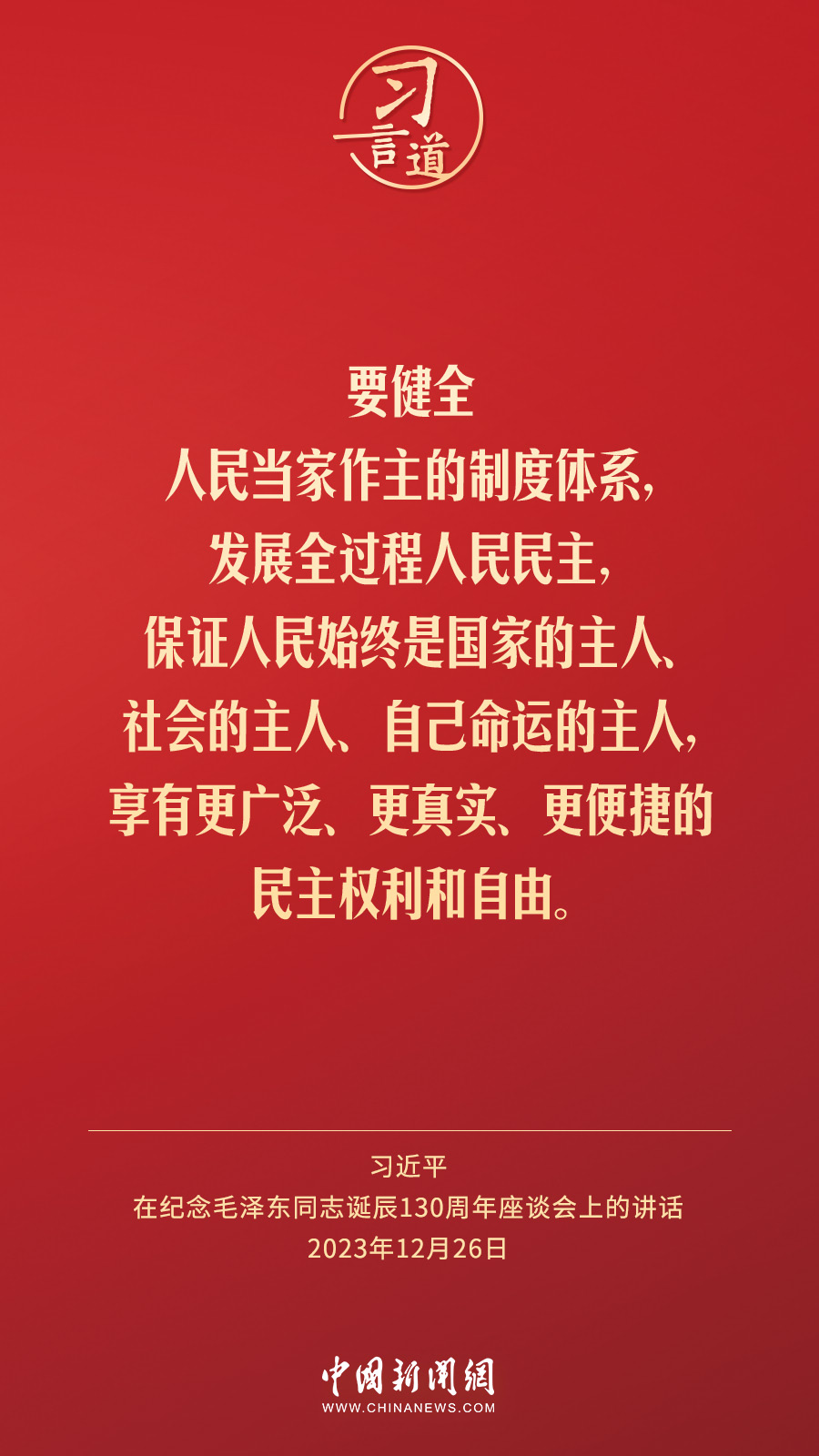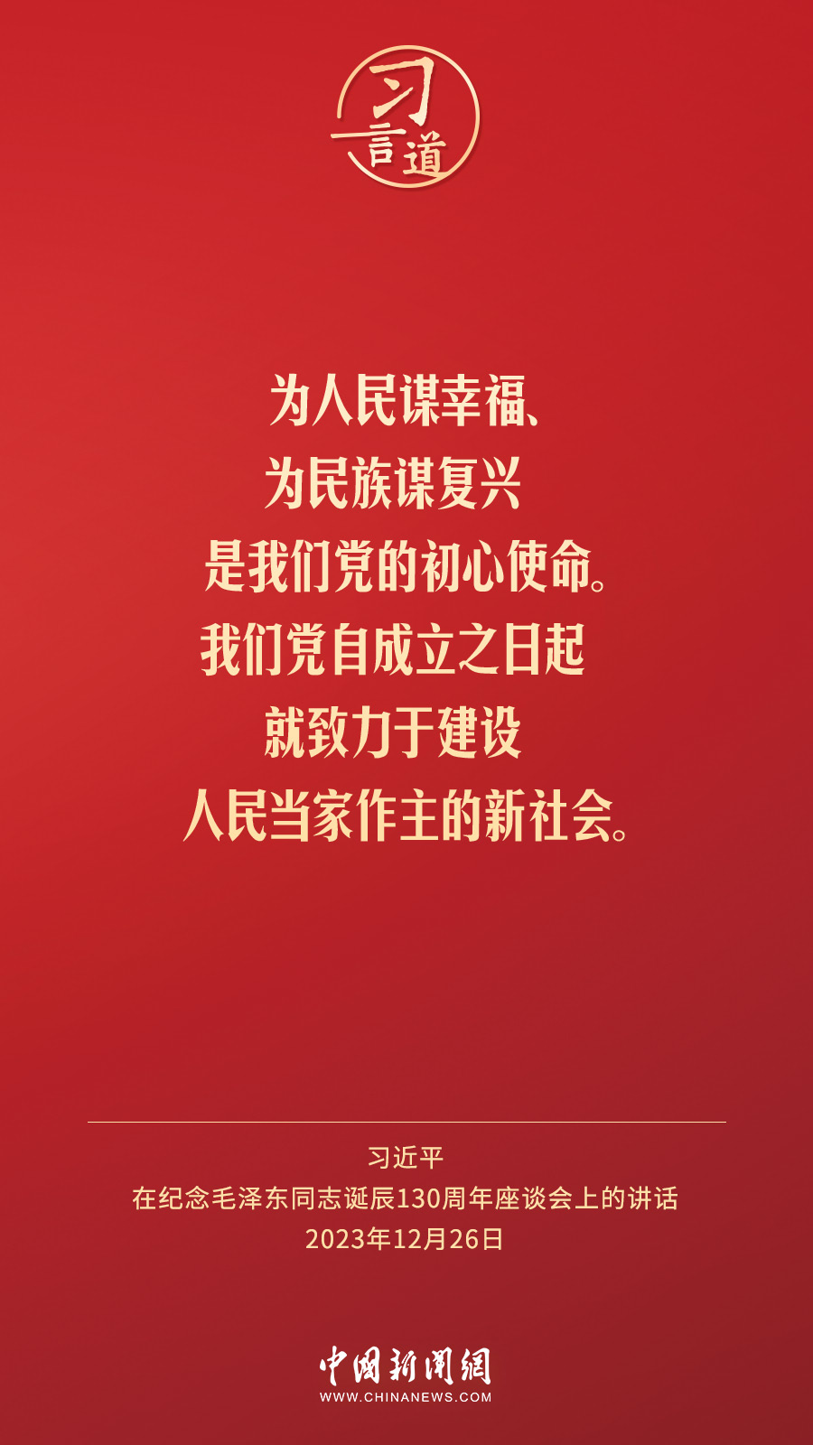中共中央26日上午在人民大會(huì)堂舉行座談會(huì),紀(jì)念毛澤東同志誕辰130周年。中共中央總書(shū)記、國(guó)家主席、中央軍委主席習(xí)近平發(fā)表重要講話。習(xí)近平指出——
