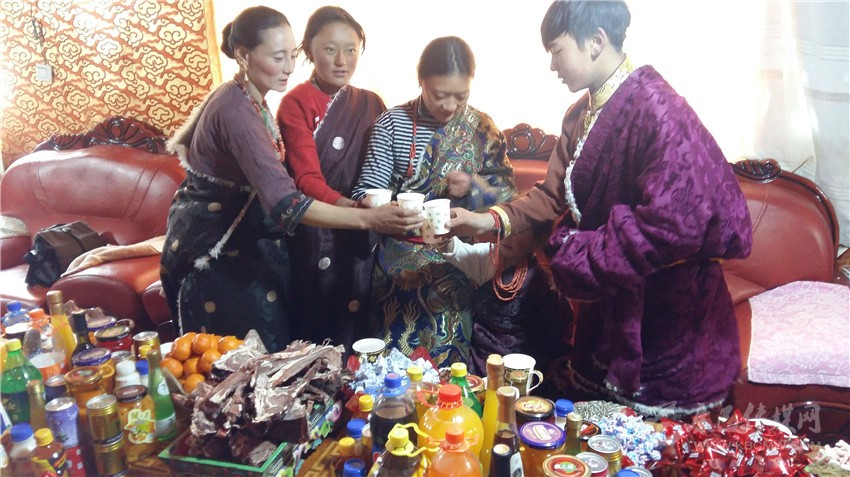 根秋卓瑪一家是俄多瑪鄉(xiāng)的村民,初一一大早,根秋卓瑪就穿上節(jié)日的盛裝?!敖裉煳覀円涯曦洈[放出來(lái),等親戚朋友祈?;貋?lái),我們一家就會(huì)圍坐在一起,拉著家常、吃著美食、唱著山歌,高高興興歡度藏歷新年?!备镒楷斦f(shuō)。